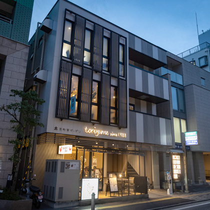 格調高く過ごしやすい京都の街並みをイメージ。重厚な黒色を基調とした外観が、静かでスタイリッシュな佇まいを醸し出します。4階建ての1階には、建物の雰囲気に調和した落ち着きある飲食店が入り、住まう人にも訪れる人にも安らぎを与える空間です。